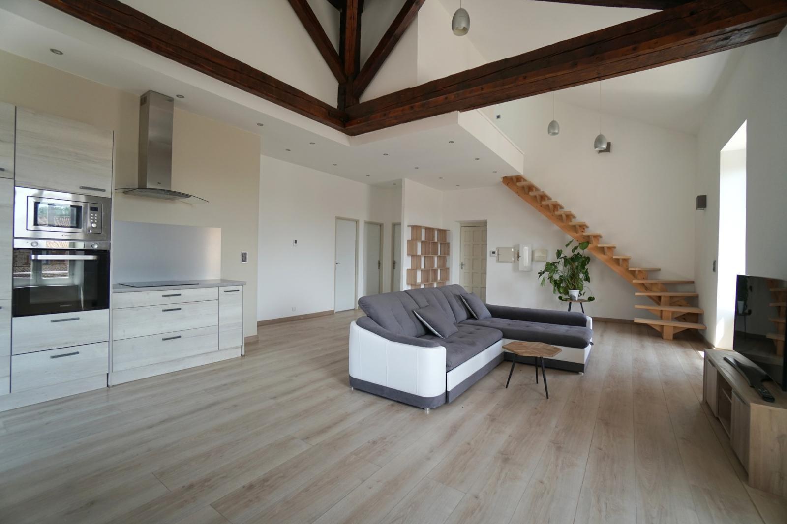Only l'Agence Immobilière et Allan Himeur vous présentent cet appartement en duplex de 87,10 m² situé dans un environnement calme proche du centre de la commune d'Alix. Ce bien comprend au rez-de-chaussée, un séjour avec cuisine ouverte de 48,42 m², deux chambres de 9,7 et 13,67 m², une salle d'eau de 4,8 m² et un WC indépendant. L'étage est composé d'une mezzanine de 39,1 m² au sol (7,23 m² en loi Carrez). L'appartement dispose d'une cave de 13 m² et de deux places de stationnement dans un parking privé. Si vous souhaitez découvrir ce bien, n'hésitez pas, contactez nous et nous nous ferons un plaisir de vous accompagner. Votre contact: Allan Himeur Only l'Agence Immobilière, 06.12.67.73.46, Agent commercial RSAC: 823 904 438 / RCP: ACI14956.
