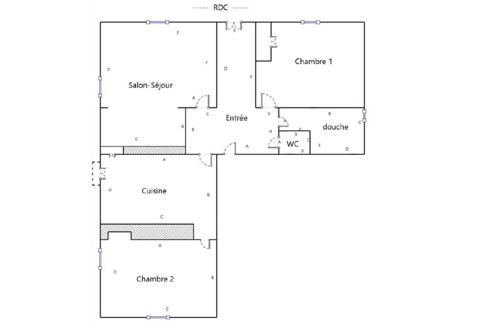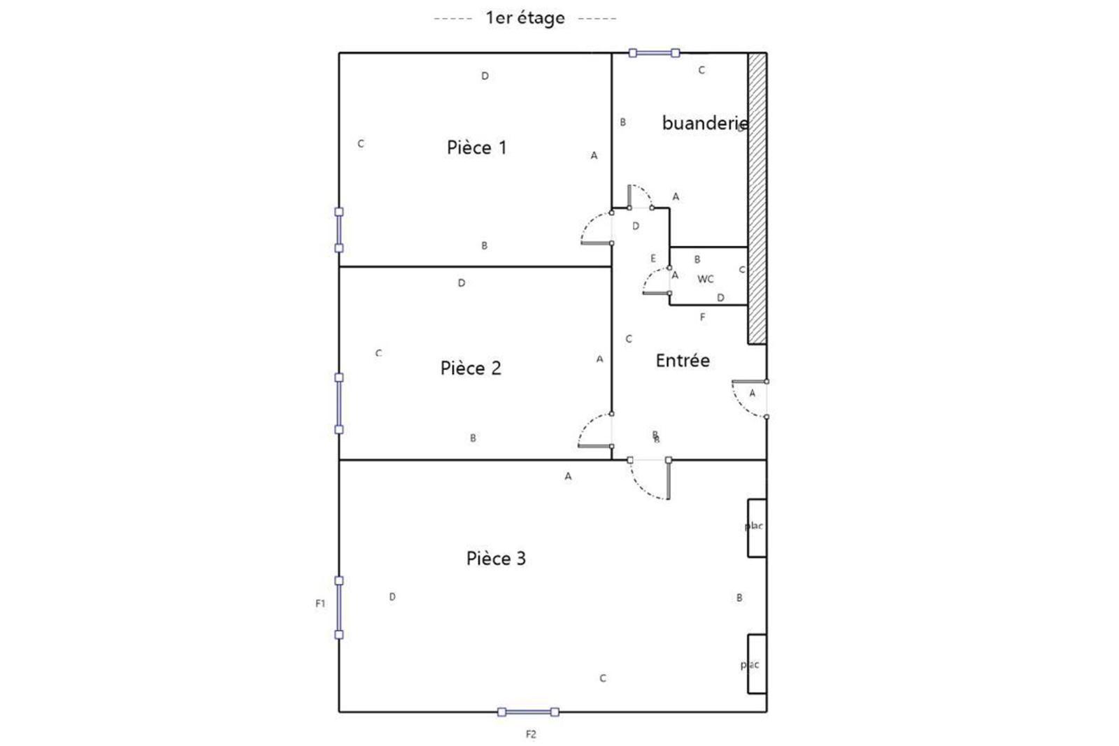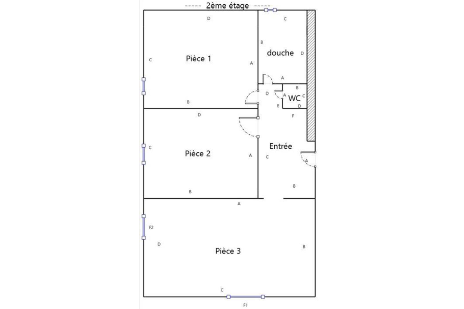 - Un appartement à rénover de 63,16 m² de type 3, comprenant 2 chambres, un salon/cuisine, un wc indépendant et une salle d'eau.