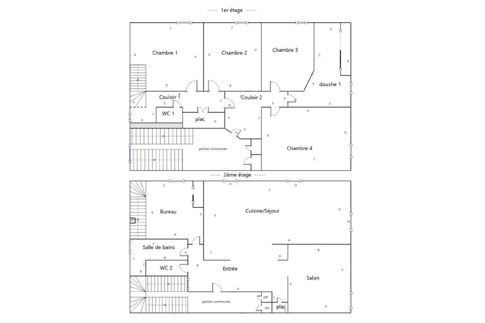- Un appartement en duplex à rafraichir de 130,30 m² de type 5, comprenant 4 chambres, un salon/cuisine, 2 salles d'eau, 2 WC indépendant.