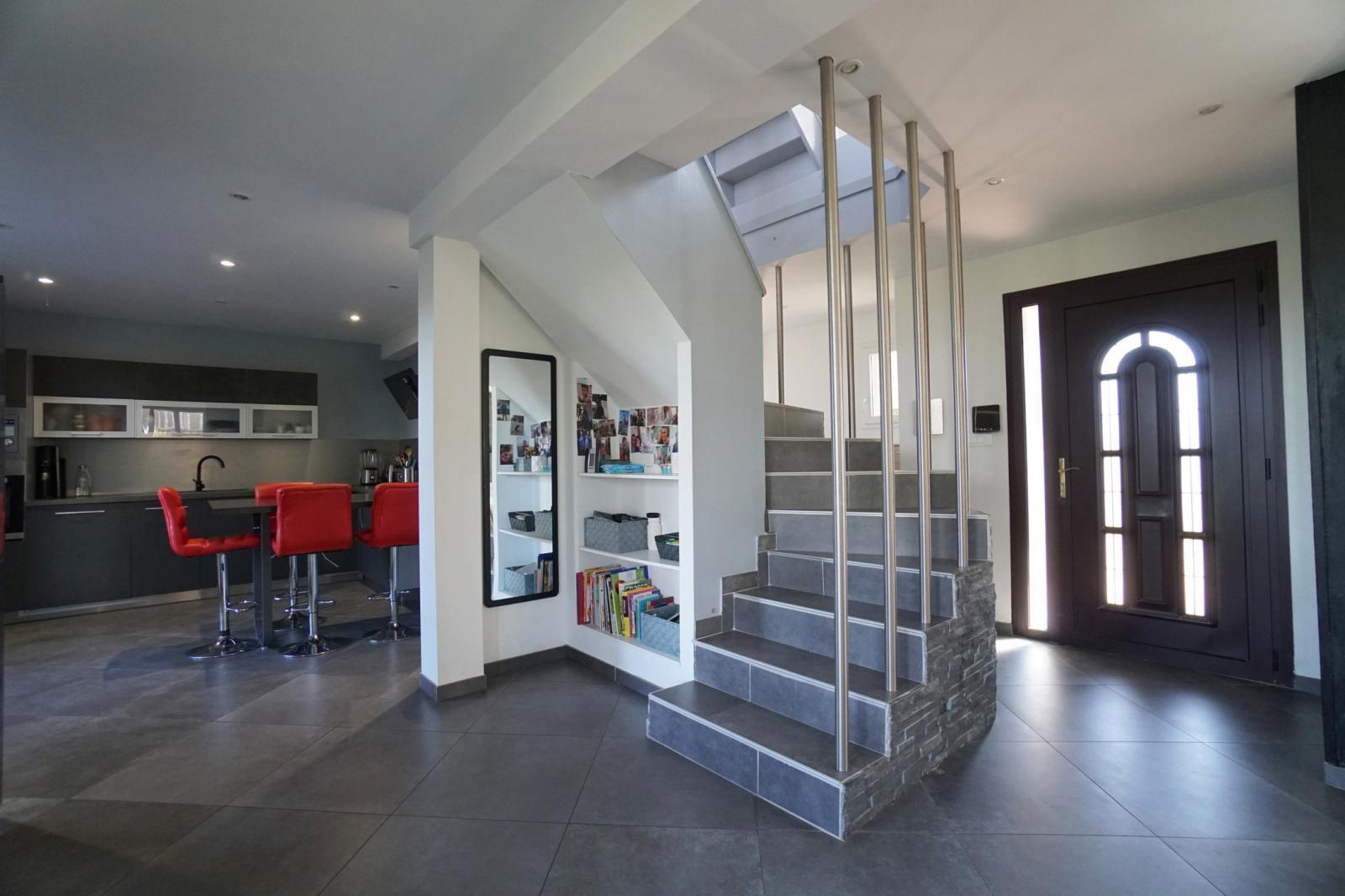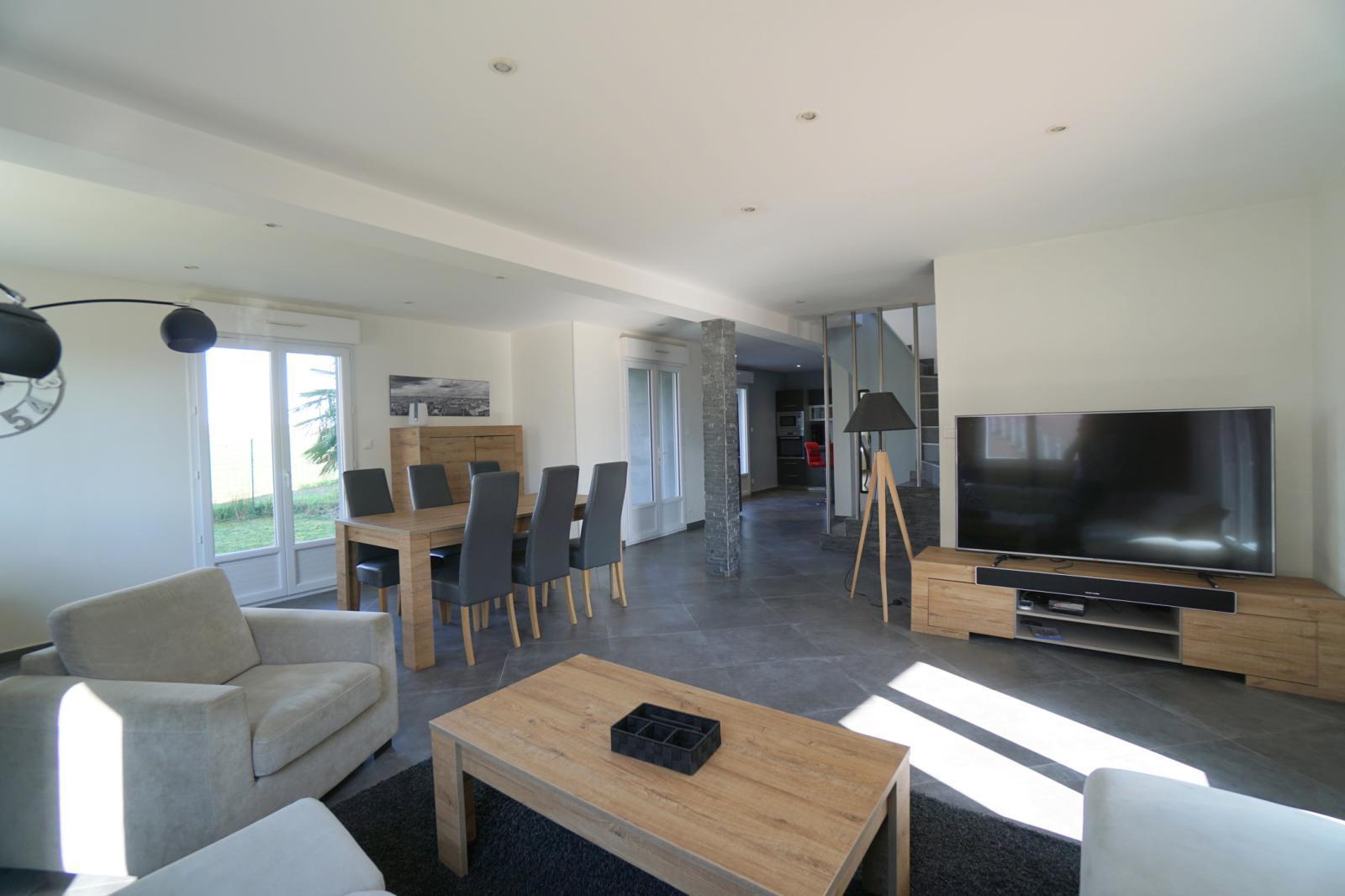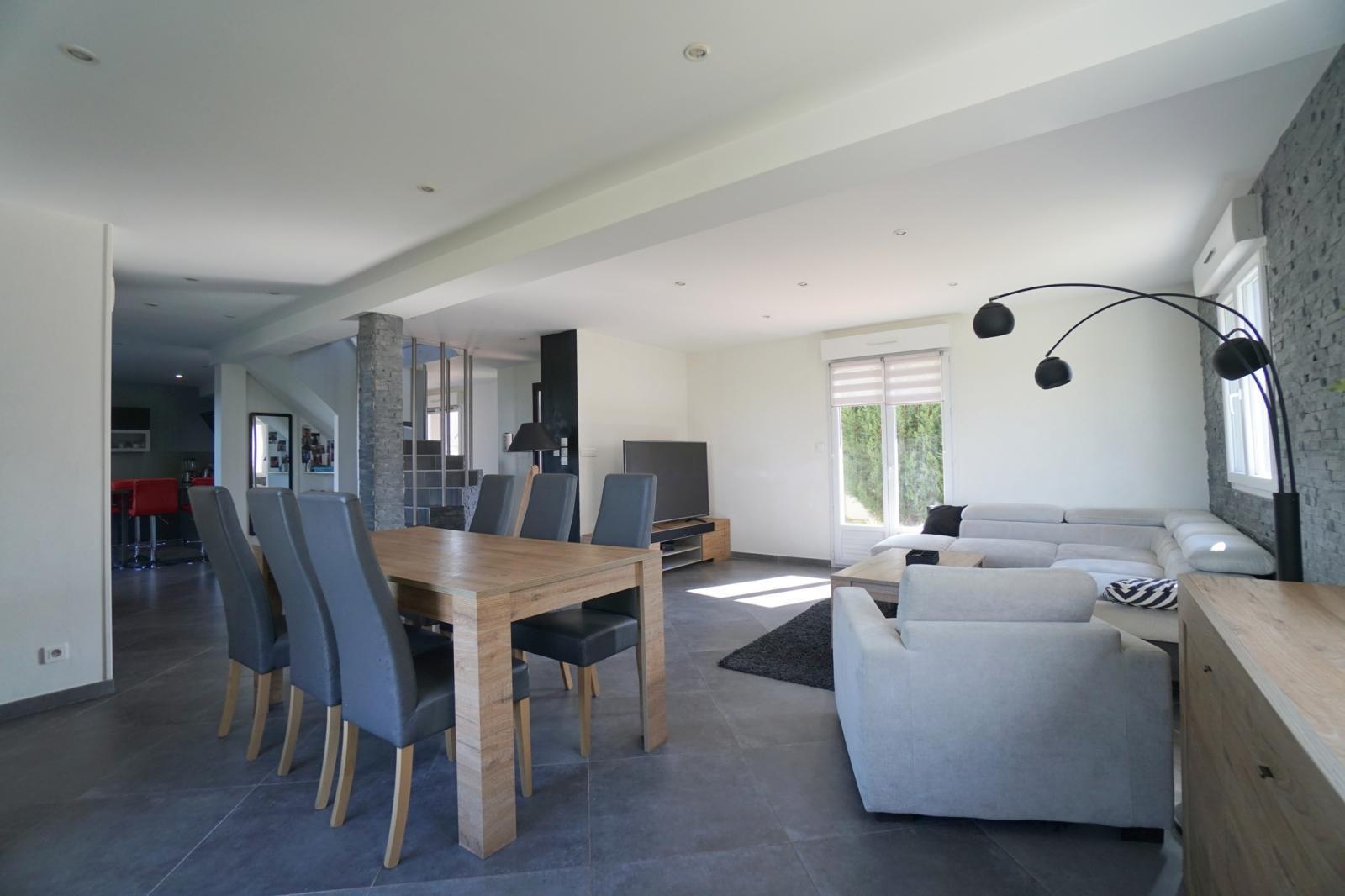 Construite en 2012, cette maison a été édifiée sur une parcelle arborée, et clôturée de 664m². Dès le premier regard, elle charme par son allure distinctive. L'entrée possède un dégagement muni d'un placard qui donne sur un salon/séjour agréable bénéficiant d'une double exposition Sud-Ouest. La cuisine quant à elle, est en retrait et reste ouverte sur le salon. Vous trouverez également au rez-de-chaussée un WC indépendant et un bureau de passage. Depuis l'intérieur, il vous sera possible d'accéder à un garage. À l'étage, un grand dégagement vous permettra d'accéder au trois chambres, à un bureau, à la salle de bain et à un WC indépendant. Le petit plus de ce niveau, c'est que les pièces donnent accès à une double terrasse Nord-Sud. Au dernier niveau se situe une pièce polyvalente de 40m² pouvant être aménagée en chambre ou en salle de jeu selon vos préférences.