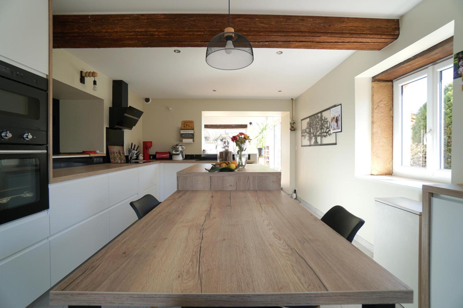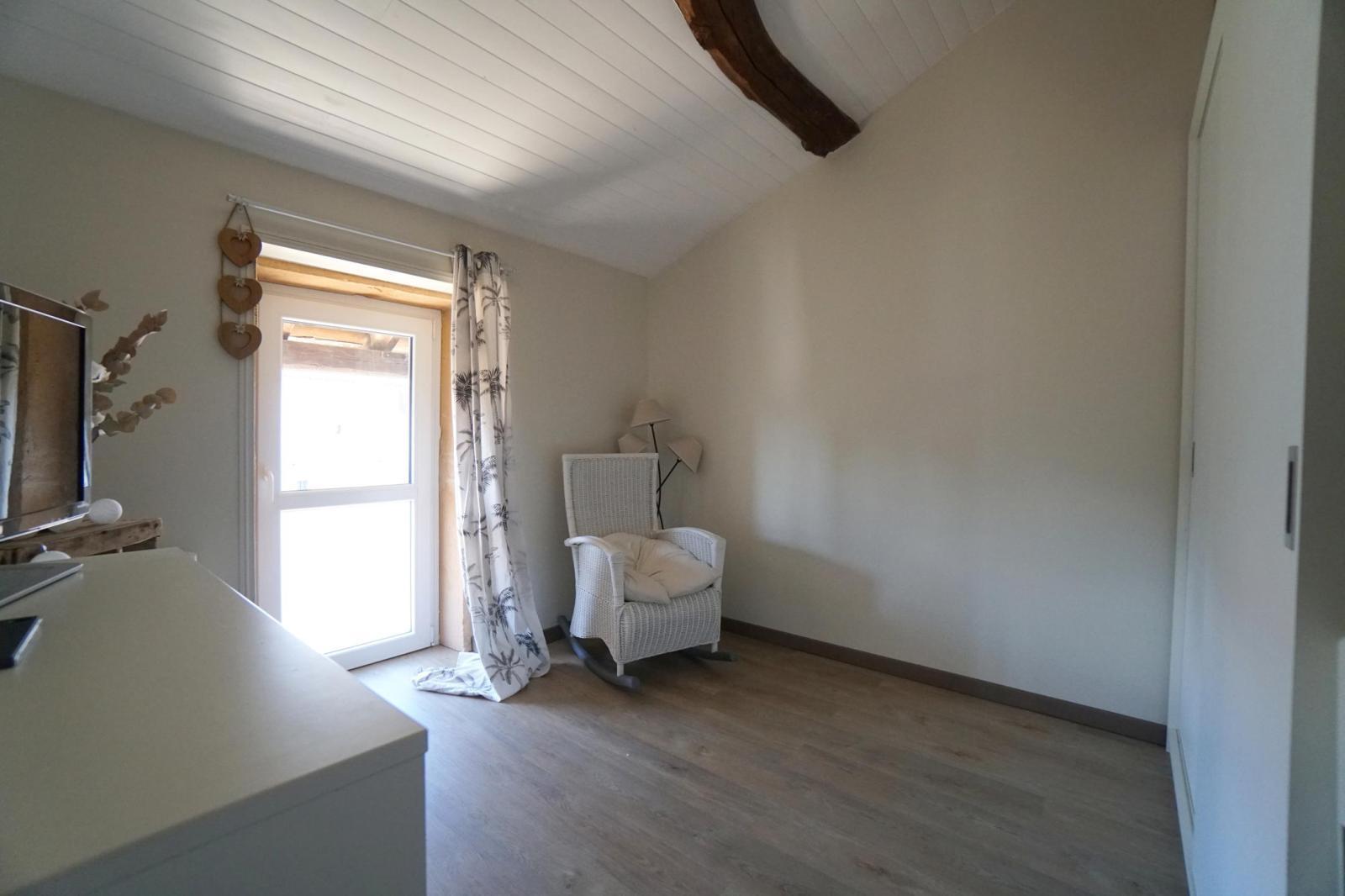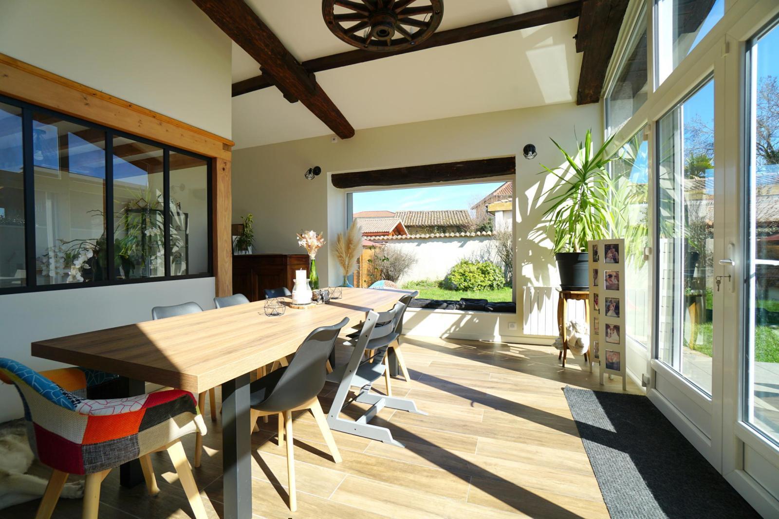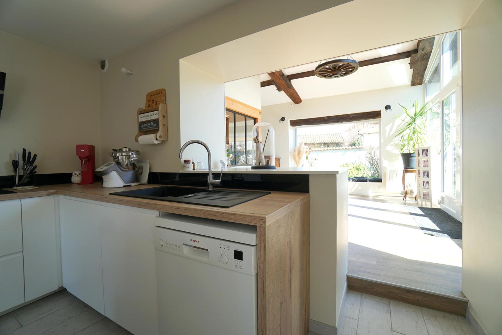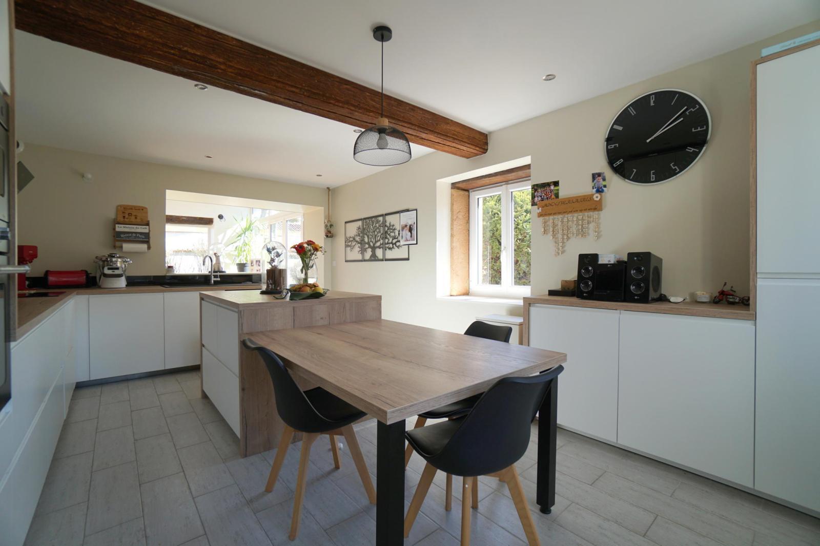 Cette maison, rénovée en 2016, a conservé son charme. Elle propose un espace de vie spacieux et lumineux en trois volumes distincts, une cuisine semi-ouverte sur le séjour déplafonné, un agréable salon avec cheminée à bois.