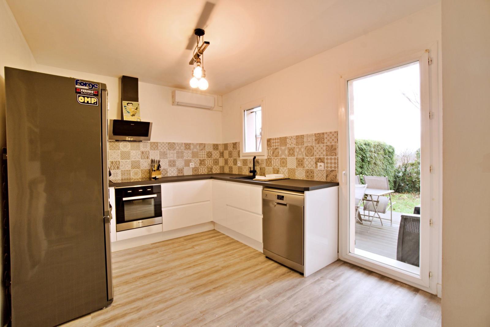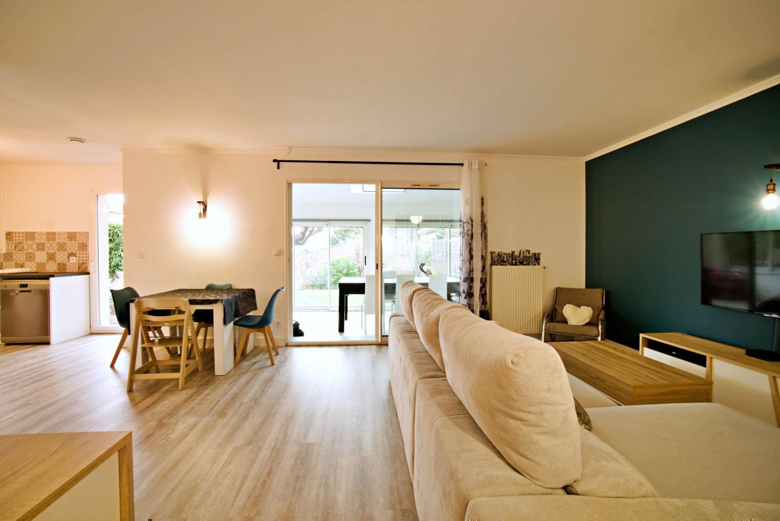 Au rez-de-chaussée, vous trouverez un séjour ouvert sur une cuisine aménagée, formant un espace convivial qui se prolonge par une véranda lumineuse. Celle-ci donne accès à un jardin clos, sans vis-à-vis, offrant un cadre extérieur agréable et facile à entretenir. Toujours de plain-pied, la maison comprend également un bureau, parfait pour le télétravail ou transformable pour agrandir la pièce à vivre, un cellier pratique et un accès direct au garage pouvant accueillir un véhicule.