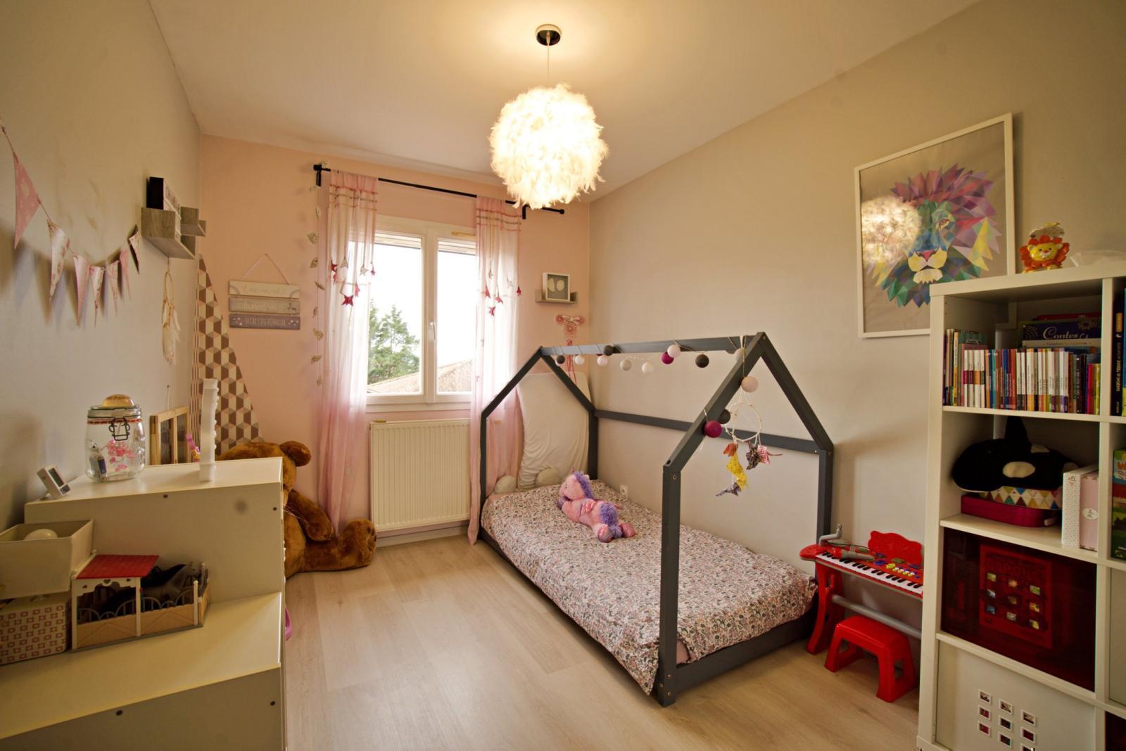 L’étage dessert trois chambres et une salle de bains indépendante.