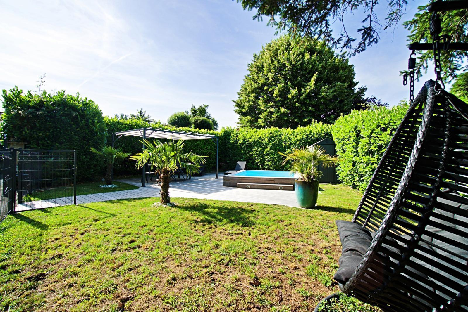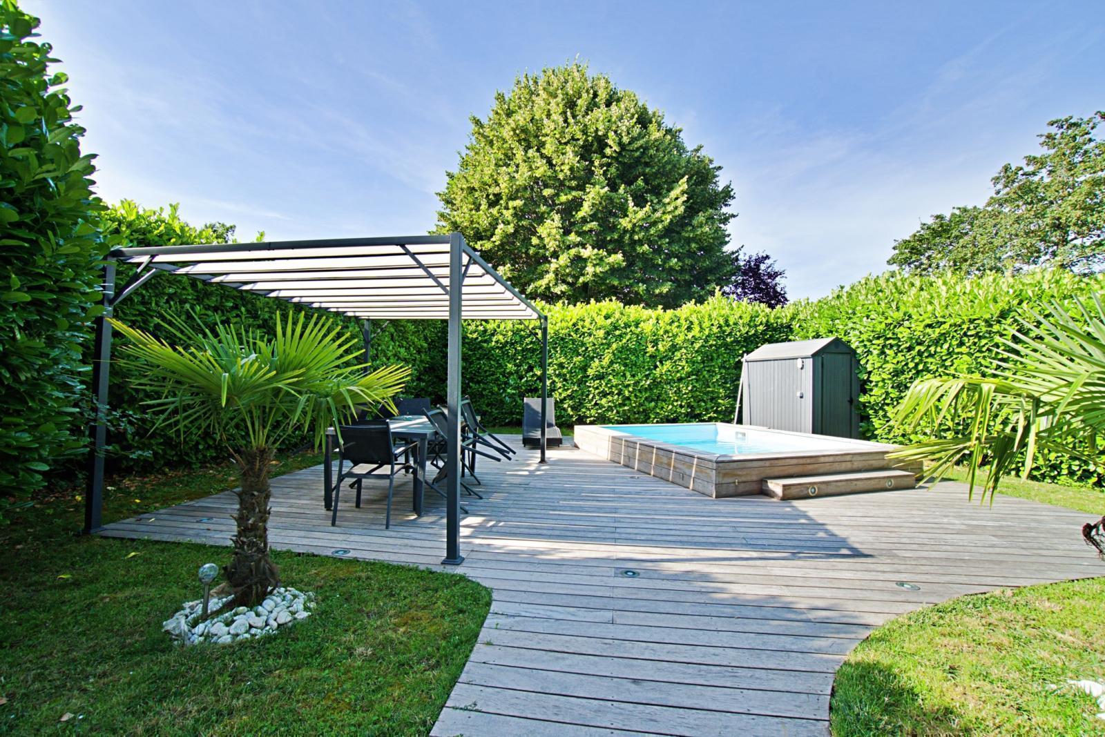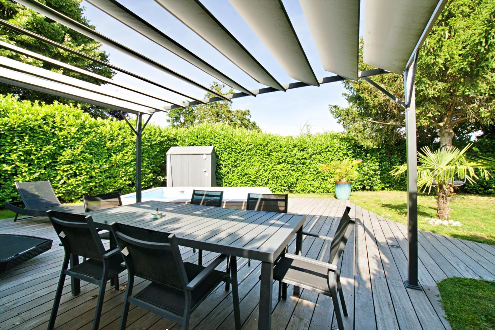 Érigée sur une parcelle de 791 m² sans vis-à-vis, cette propriété offre un espace extérieur exceptionnel avec une piscine, une terrasse et une pergola, le tout clos et sécurisé pour profiter pleinement des beaux jours.