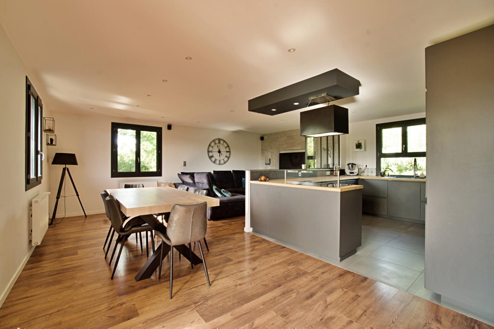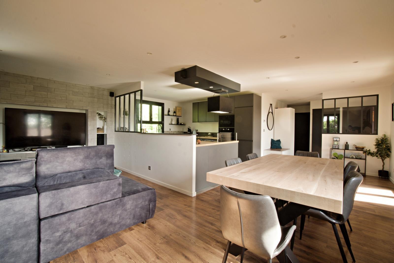 Entièrement rénovée en 2020 et 2021, cette maison offre un grand espace de vie lumineux grâce à son exposition Est, Sud et Ouest. La pièce à vivre se compose d'un séjour spacieux ouvert sur une cuisine aménagée, parfaite pour les moments de convivialité.