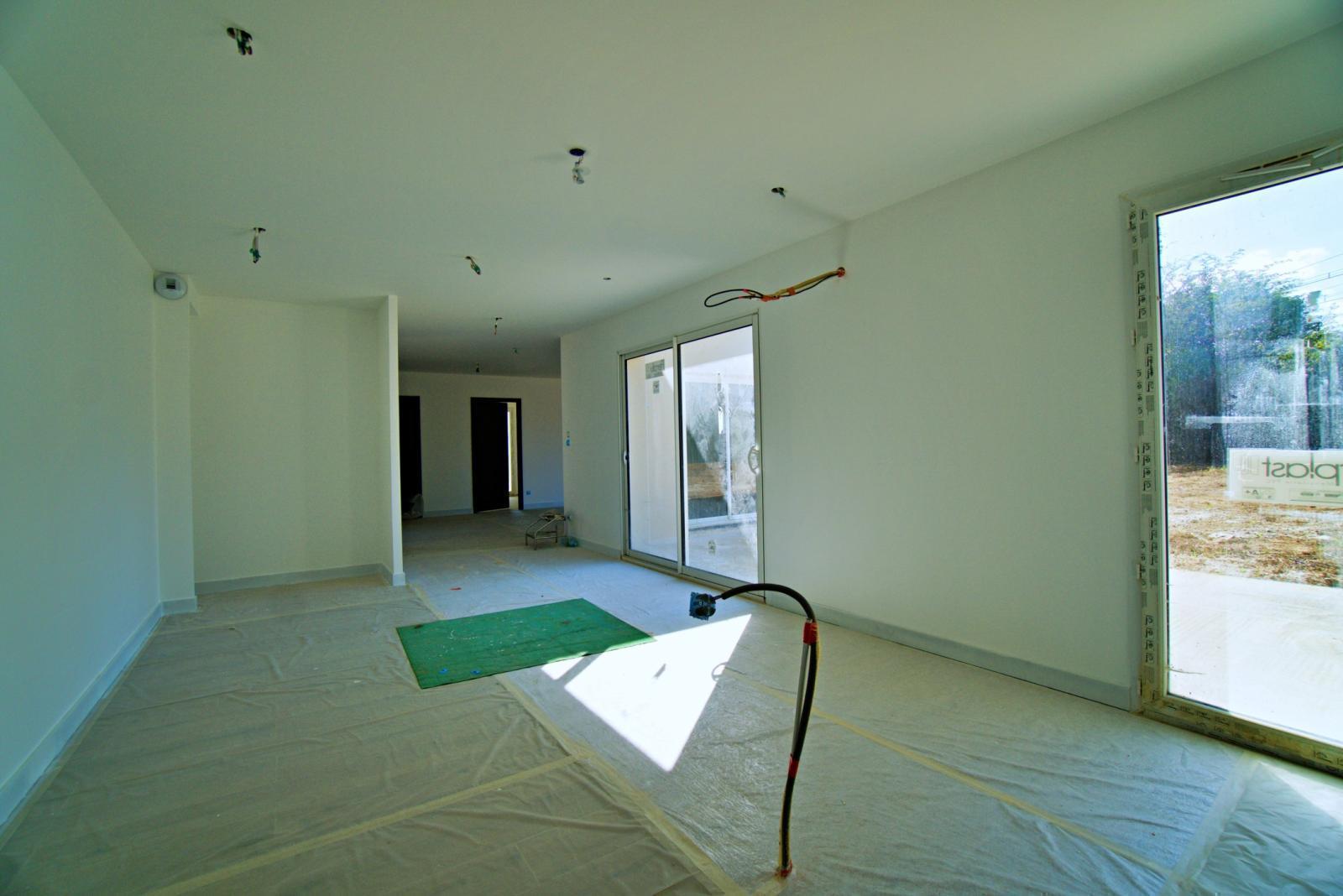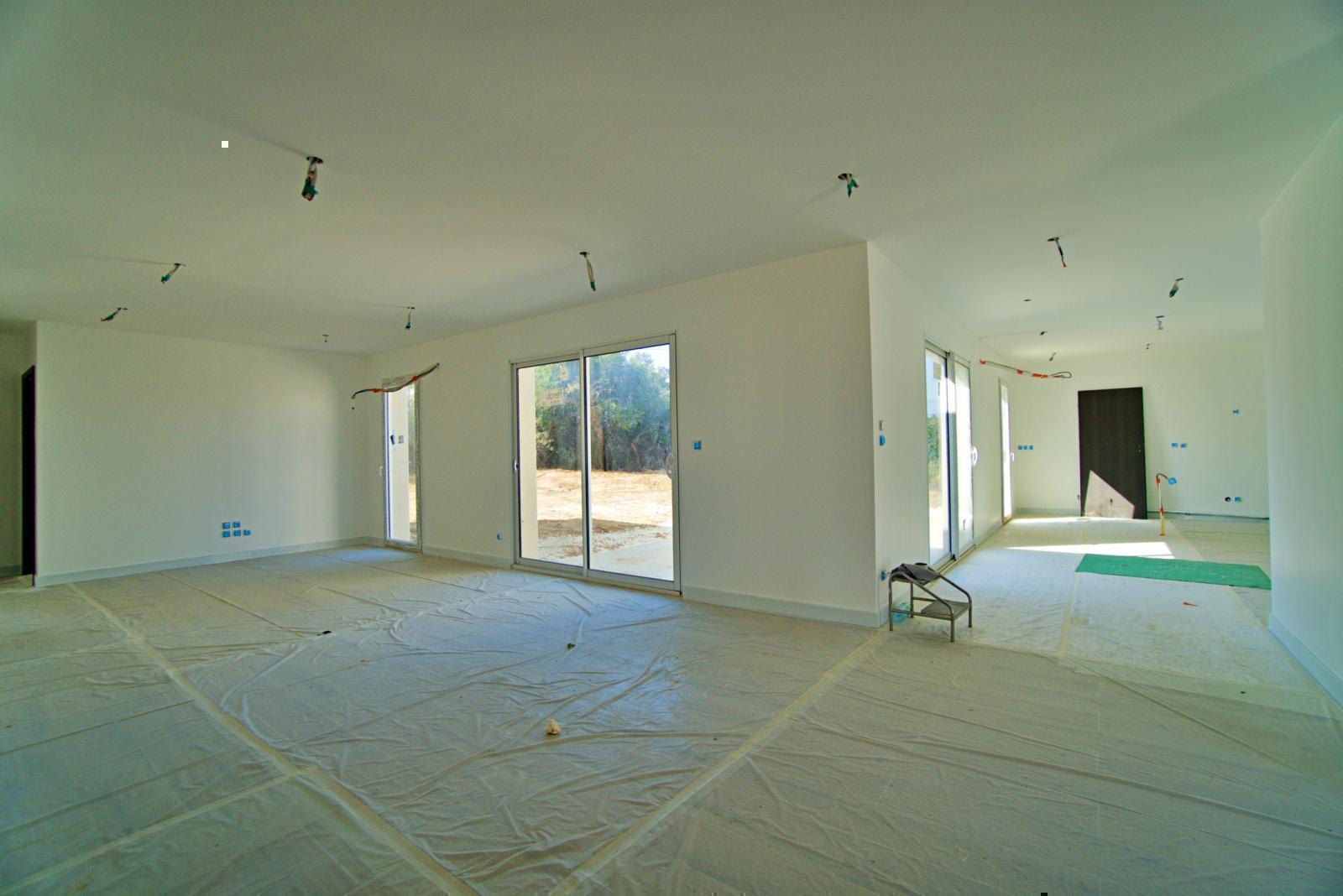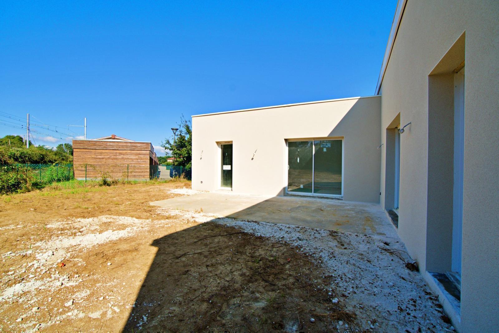 Cette maison de plain-pied propose une surface habitable de 129m². Une entrée avec placard donne accès à la spacieuse pièce de vie de 60m² exposée Sud Ouest. Cette pièce donne accès à trois chambres, une suite parentale avec salle d'eau et une salle de bains indépendante. La maison profite également d'un garage attenant et d'une buanderie. Elle est implantée sur une parcelle de 700m² de terrain, au sein d'un lotissement de 6 lots.