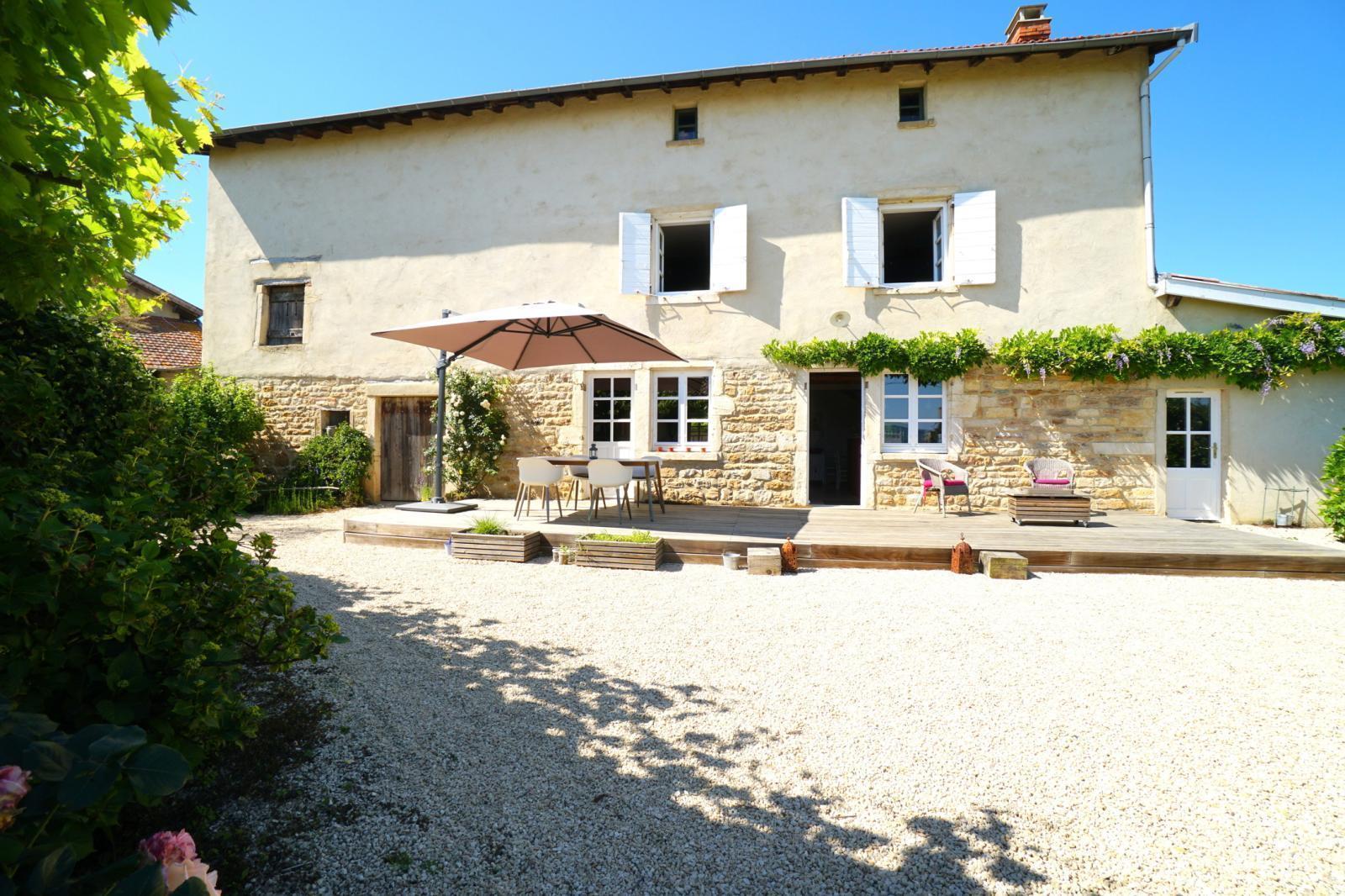 ONLY l'Agence Immobilière et Jonathan PIN vous présentent ce corps de ferme indépendant rénové, à 5min en voiture du centre de Quincieux et de ses commodités (Ecoles, Commerces et Transports). Cette ancienne bâtisse construite en pierre et en pisé, est orientée Sud et offre près de 190m² habitables. Le premier niveau propose un séjour ouvert sur cuisine de 52m², un salon indépendant, une entrée avec rangements, une buanderie, une salle d'eau et un WC. Un escalier en pierre dessert le deuxième niveau et ses 4 chambres avec une salle d'eau indépendante. Ce bien dispose d'un grenier aménagé et isolé. Il profite également d'une dépendance, d'une annexe et d'une cave semi-enterrée. Cette propriété s'ouvre sur une cour intérieure et une parcelle de terrain arborée. Elle est raccordée au tout-à-l'égout. Vous souhaitez visiter? Appelez-moi et je me ferai un plaisir de vous accompagner.