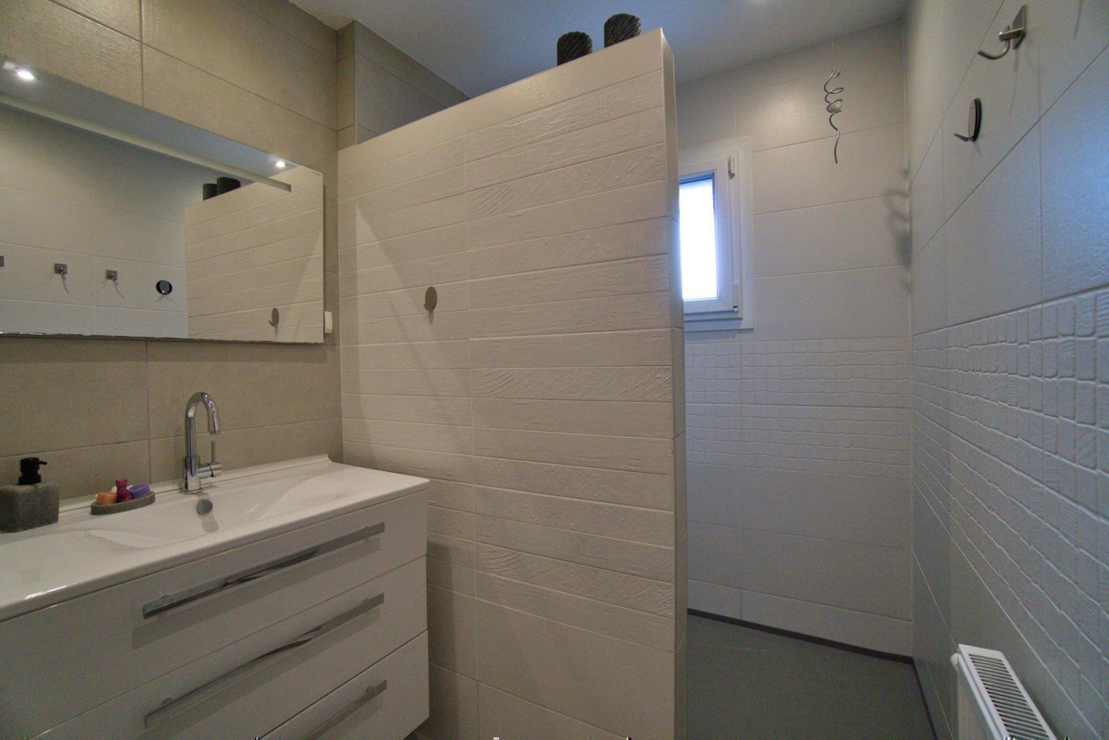 La maison a bénéficié de nombreux travaux récents : toiture, façade et tableau électrique rénovés, isolation extérieure, menuiseries avec volets roulants électriques. Le chauffage est assuré par une chaudière gaz Frisquet.