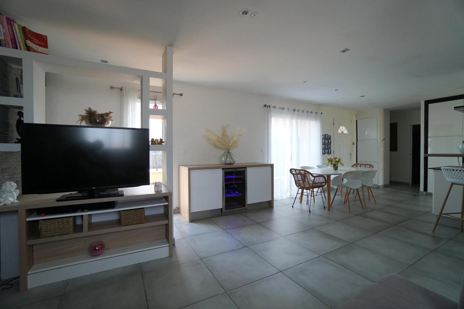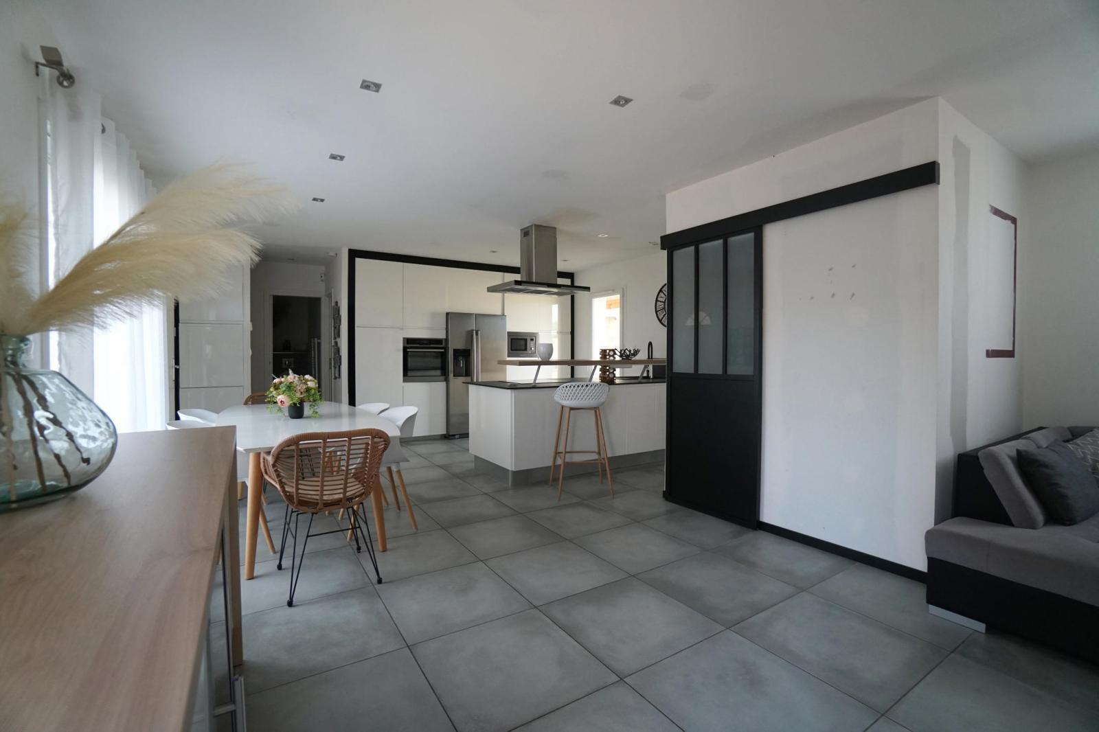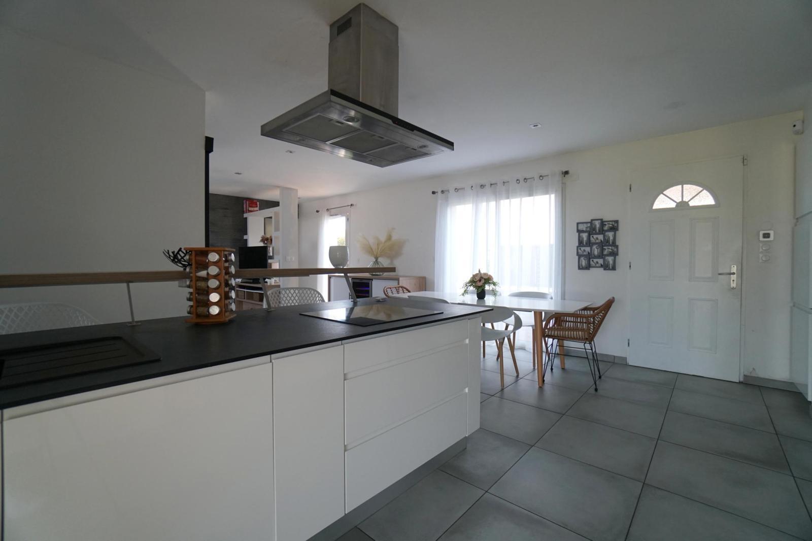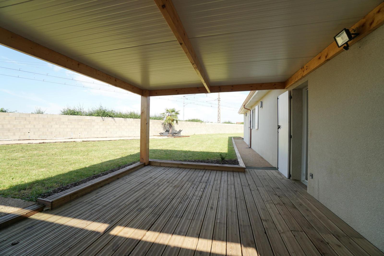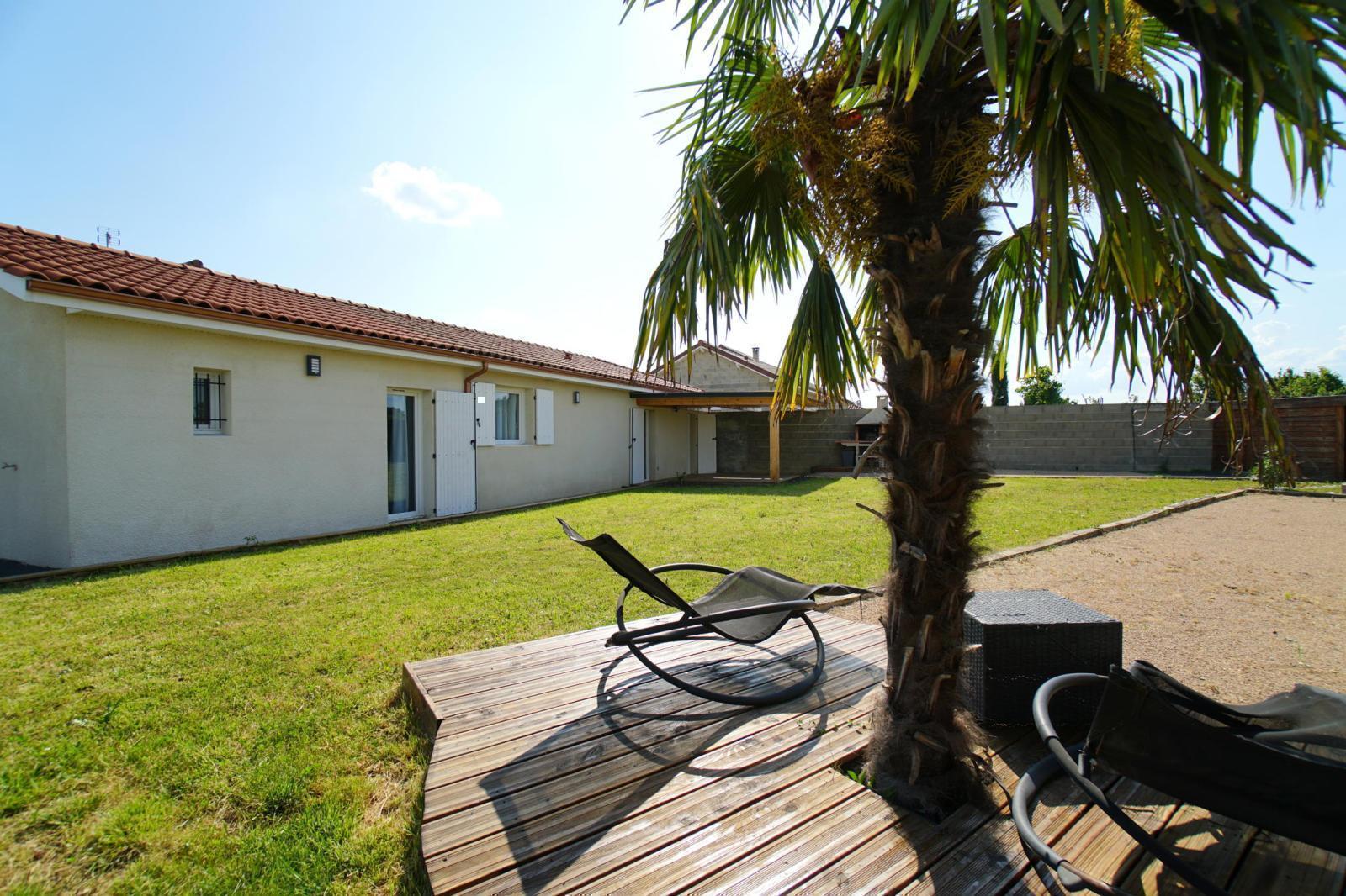 ONLY l'Agence Immobilière et Jonathan PIN vous présentent cette maison de plain-pied, situé dans le Hameau des Genestels, à quelques minutes du centre de Quincieux et de ses commodités. Cette maison construite en 2011, se trouve au bout d'une impasse. elle propose une pièce à vivre traversante Sud/Nord de 43m², lumineuse, elle s'ouvre sur une agréable terrasse couverte et son jardin de 909m² clos. Ce bien dispose de deux espaces nuits, l'un avec une suite parentale avec salle d'eau et un bureau. Le second proposant deux chambres et une salle de bains indépendante.
