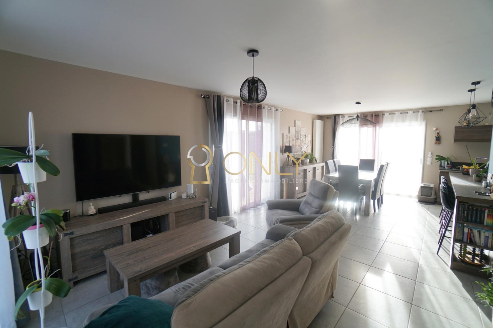 Construite en 2018, cette maison bénéficie d'une garantie décennale valable jusqu'en 2028. Dès votre entrée, vous découvrirez un salon/séjour lumineux avec une triple exposition Est-Sud-Ouest, agrémenté d'une cuisine ouverte équipée et fonctionnelle, ainsi que d'un espace buanderie. Vous trouverez également au rez-de-chaussée un WC indépendant et une pièce polyvalente pouvant être aménagée en bureau ou chambre selon vos préférences. Depuis l'intérieur, il vous sera possible d'accéder au garage de 24,80m². À l'étage, un dégagement dessert deux chambres avec placard, une salle de bain, un WC indépendant, ainsi qu'une suite parentale.