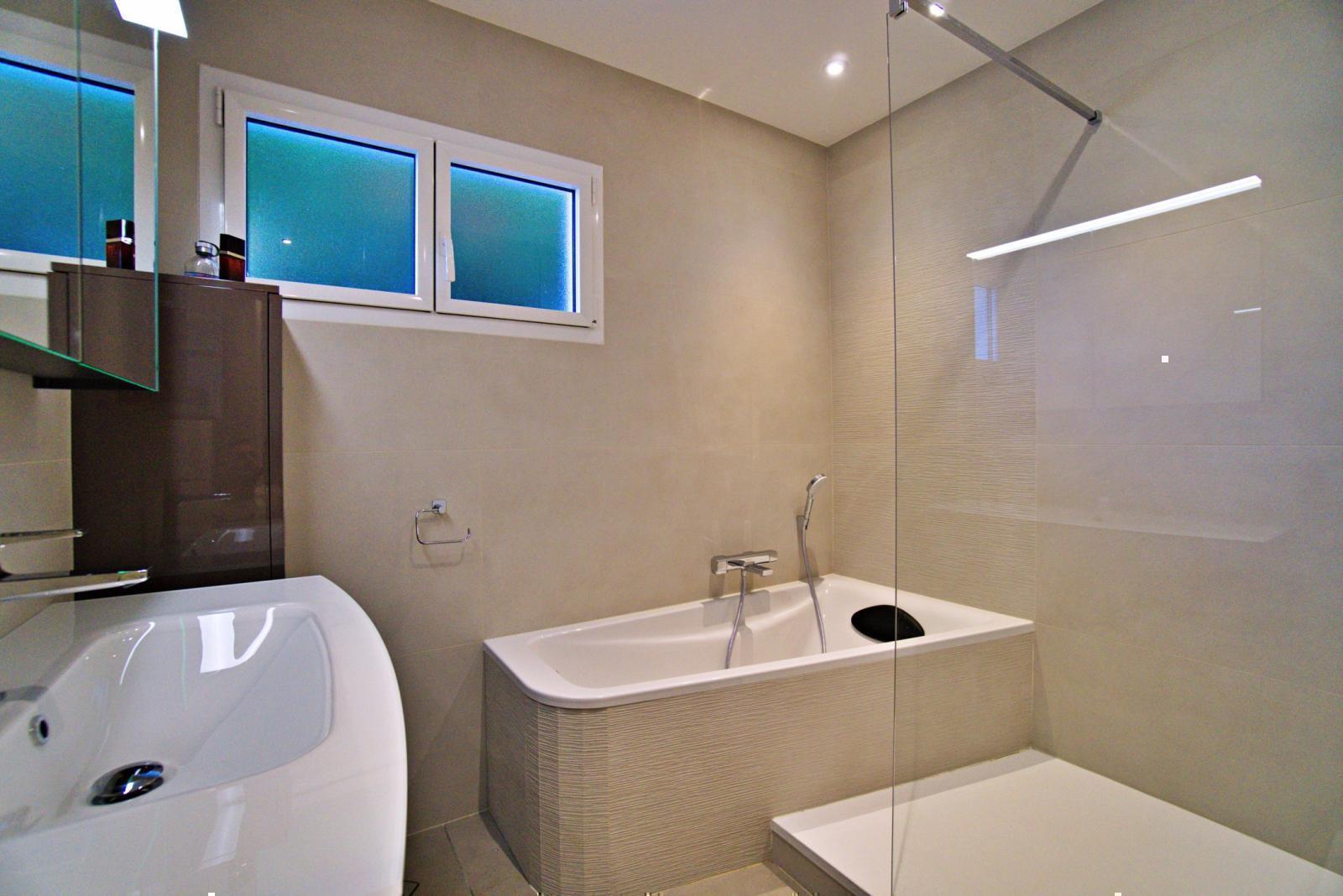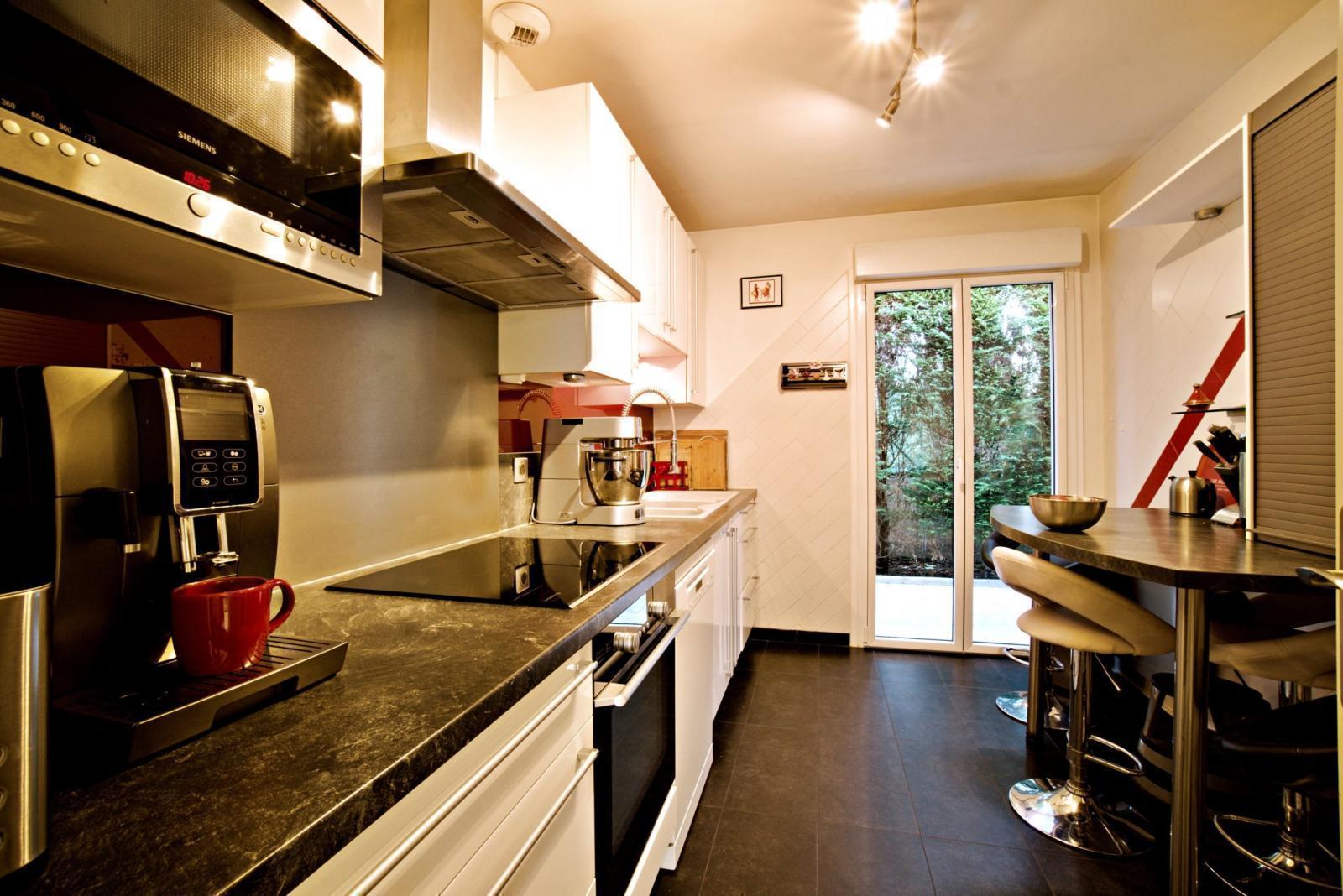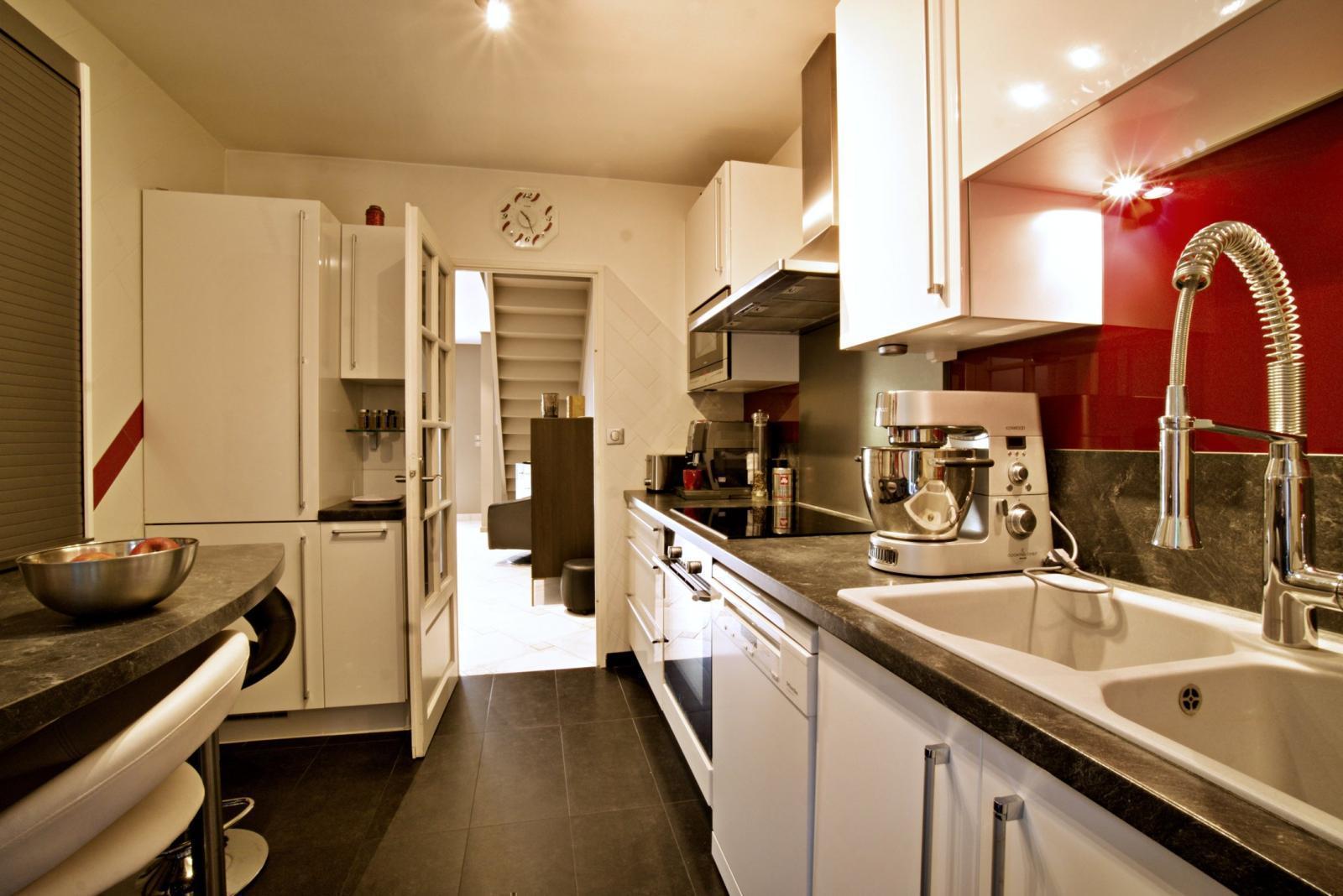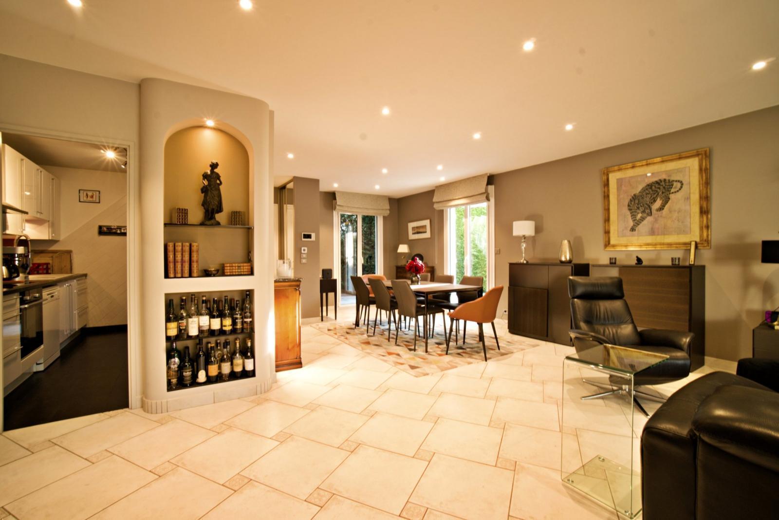 La cuisine, actuellement indépendante, peut être ouverte sur le séjour pour répondre aux besoins d’un espace de vie plus spacieux. Toujours au rez-de-chaussée, la maison dispose d’une chambre, d’un dressing, d’un bureau et d’une salle de bains avec douche.