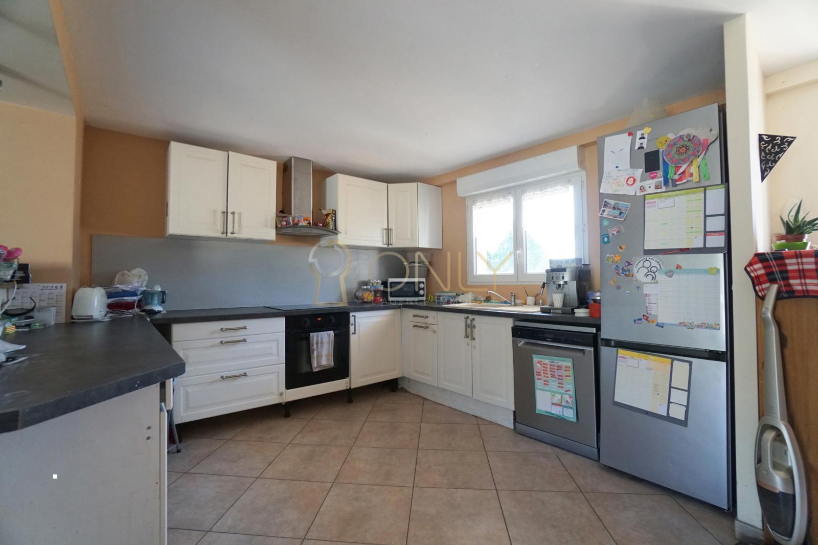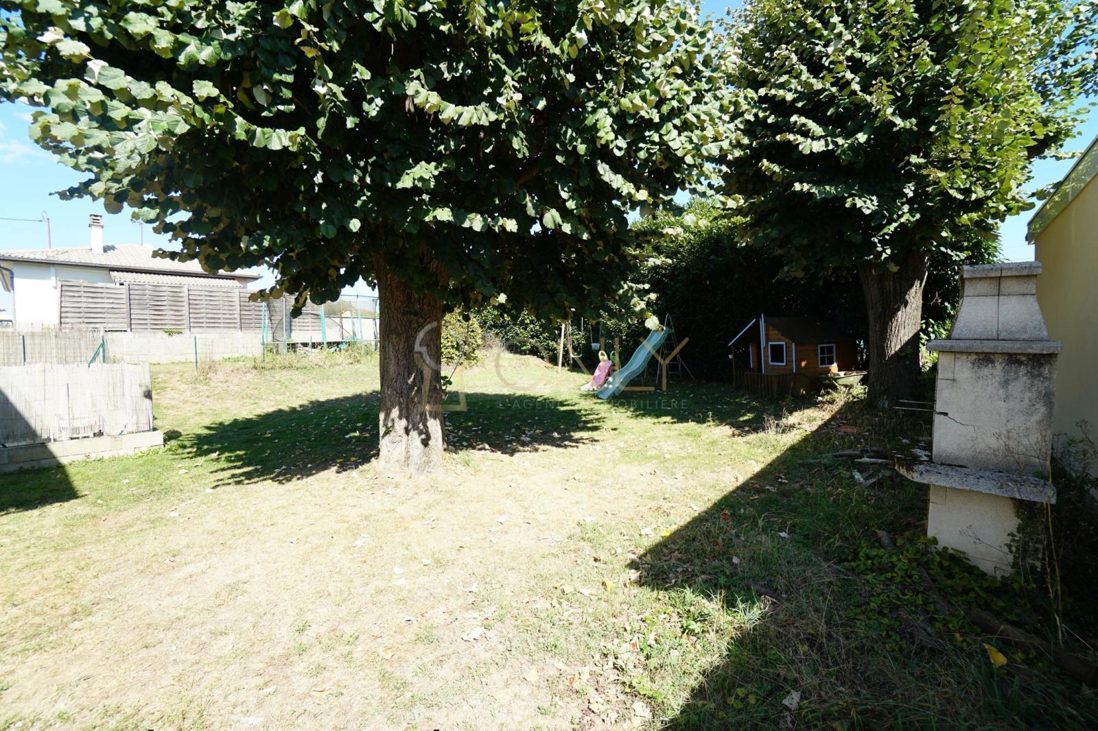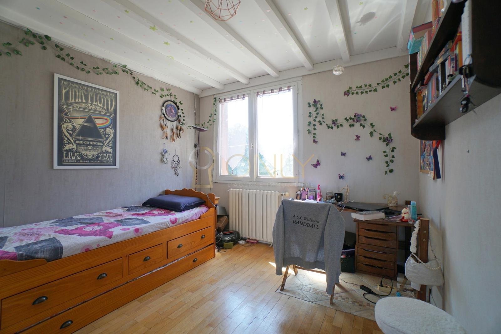 Cette maison est implantée sur une parcelle de 981m² dans un environnement arboré. Elle offre un séjour/cuisine de plain-pied exposé Est-Ouest donnant accès à sa terrasse. A l'étage, le bien bénéficie de quatre chambres, un WC indépendant et une salle de bain. Le garage est attenant à la maison.