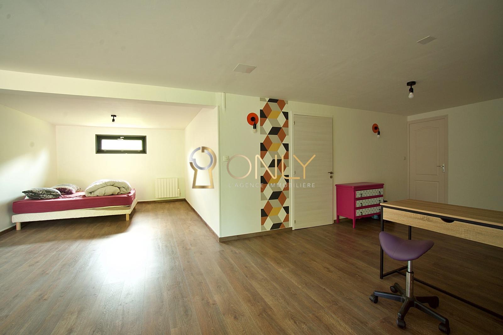 Au rez-de-chaussée, vous découvrirez un garage de 36 m² ainsi qu’une pièce de 39 m² aménageable selon vos besoins. Cet espace dispose d’une salle de bain et d’un WC, ce qui en fait un lieu idéal pour créer une suite parentale, un bureau indépendant ou un espace de vie supplémentaire selon votre projet.