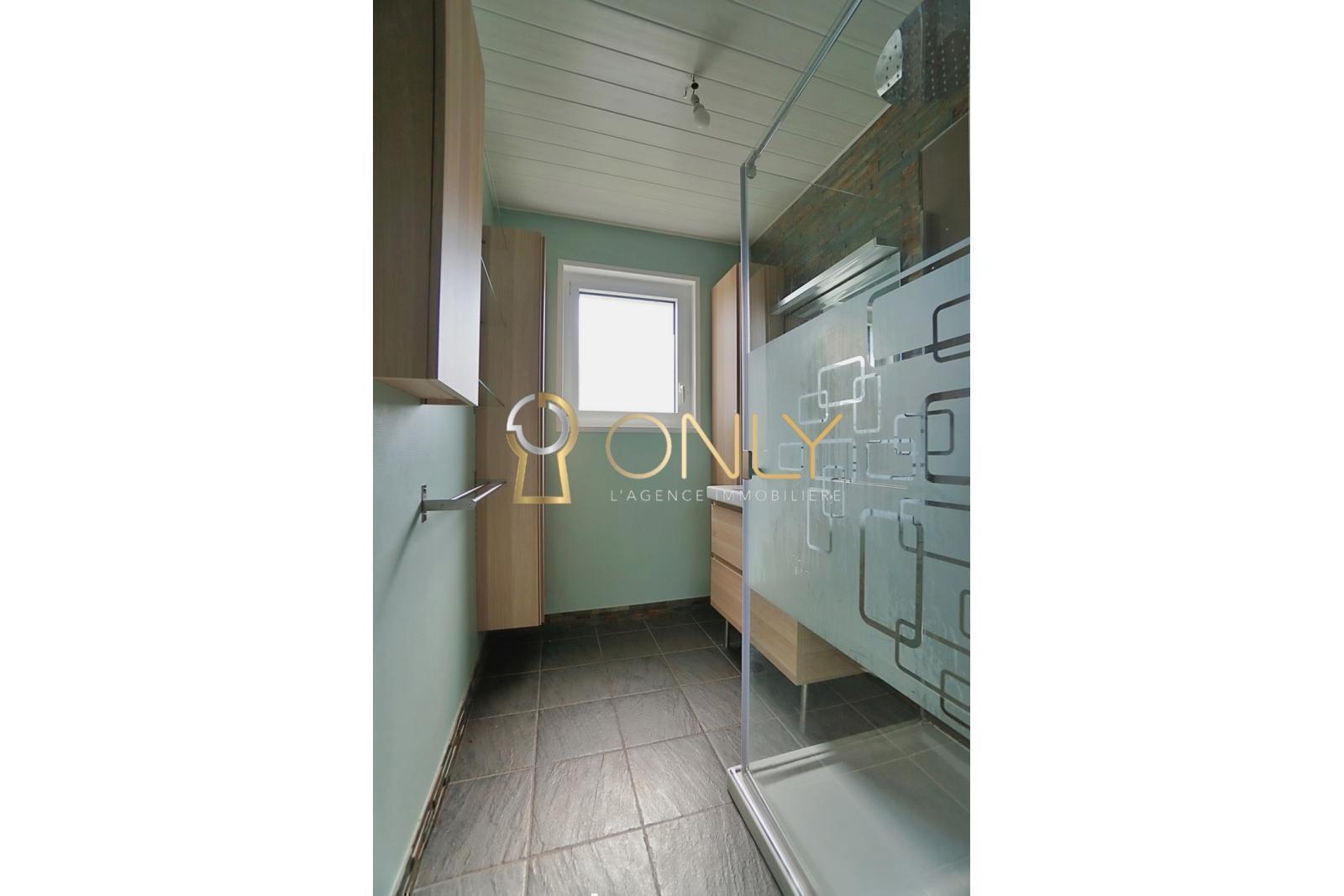 À l’étage, la maison s’ouvre sur une agréable pièce de vie avec cuisine ouverte sur le séjour, créant un espace convivial, prolongé par une véranda. Ce niveau accueille également trois chambres avec placards intégrés, une salle d’eau et un WC indépendant.