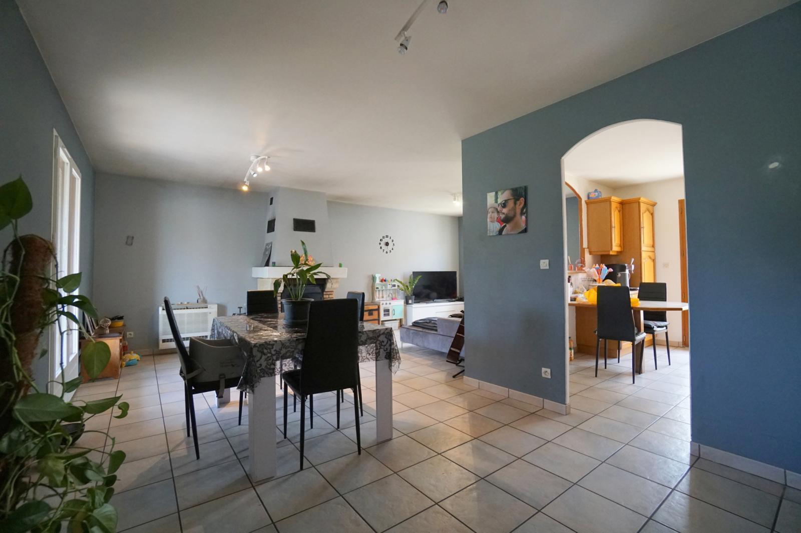 Le rez-de-chaussée se compose d'un séjour exposé Est-Ouest, équipé d'une cheminée pour une ambiance chaleureuse, ainsi que d'une cuisine semi-ouverte. Quelques marches à monter vous permettrons d'atteindre l'étage où vous trouverez un dégagement desservant trois chambres, une salle de bain et un WC indépendant.