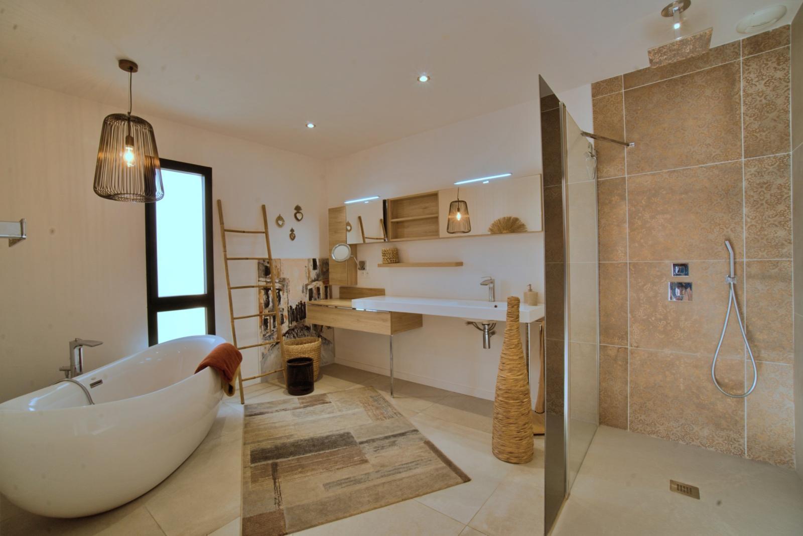 Ce que l’on aime particulièrement : Le niveau de finition, identique au standing d’une maison d’architecte, les trois suites au rez-de-chaussée, ainsi que les volumes ouverts et la transparence qui relient intérieur et extérieur.
